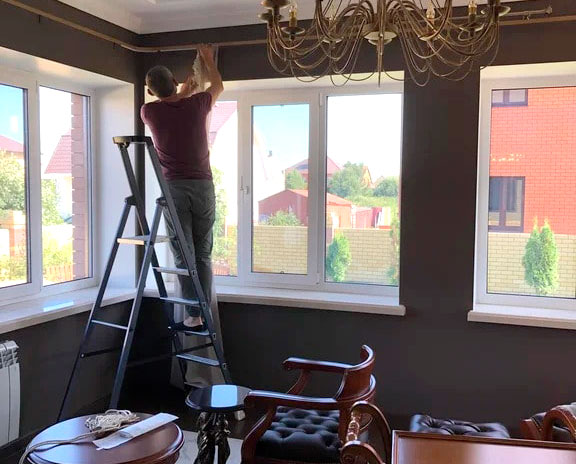 Опыт наших специалистов по установке карнизов и замерщиков, а также использование специального современного оборудования, дает возможность работать на любой высоте, со сложной архитектурой интерьера, что позволяет нам реализовывать проекты любого масштаба и сложности по текстильному оформлению интерьера. Устанавливаем карнизы любой сложности: потолочные карнизы, римские карнизы, электрокарнизы в системе Умный дом.